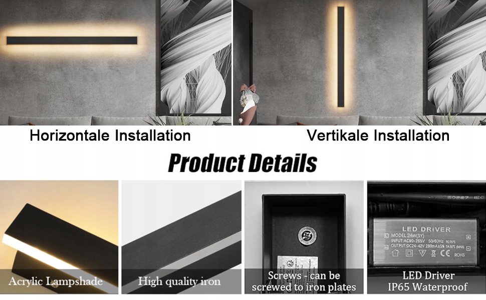 💡 【Высококачественный материал】: Длинный настенный светильник изготовлен из высококачественного железного материала с антикоррозийными, антикоррозийными и Технология запекания лака. Абажур выполнен из акрила. В целом этот светильник можно использовать не только в помещении, но и на открытом воздухе, он также оставляет очень качественное впечатление.