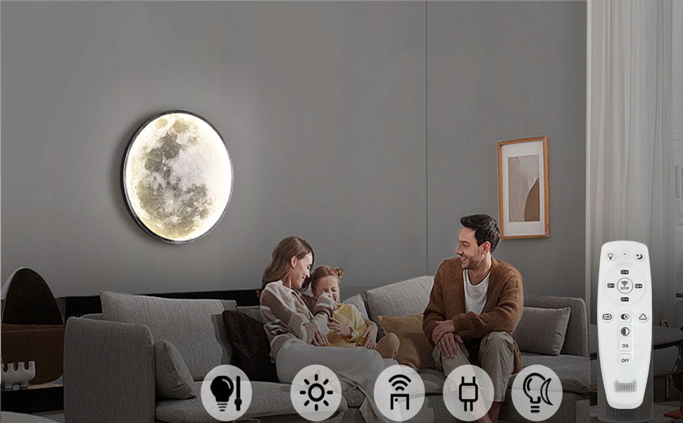 НАСТІННИЙ СВІТИЛЬНИК МІСЯЦЬ, РЕГУЛЮВАННЯ, ДИСТАНЦІЙНЕ КЕРУВАННЯ, ФУНКЦІЯ НІЧНИКА, 24см