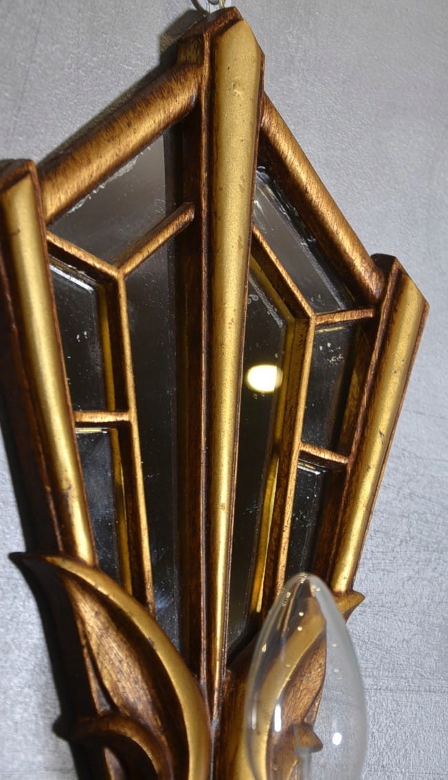 Настінний світильник з дзеркалом в гламурному стилі - золотий, елегантний дизайн