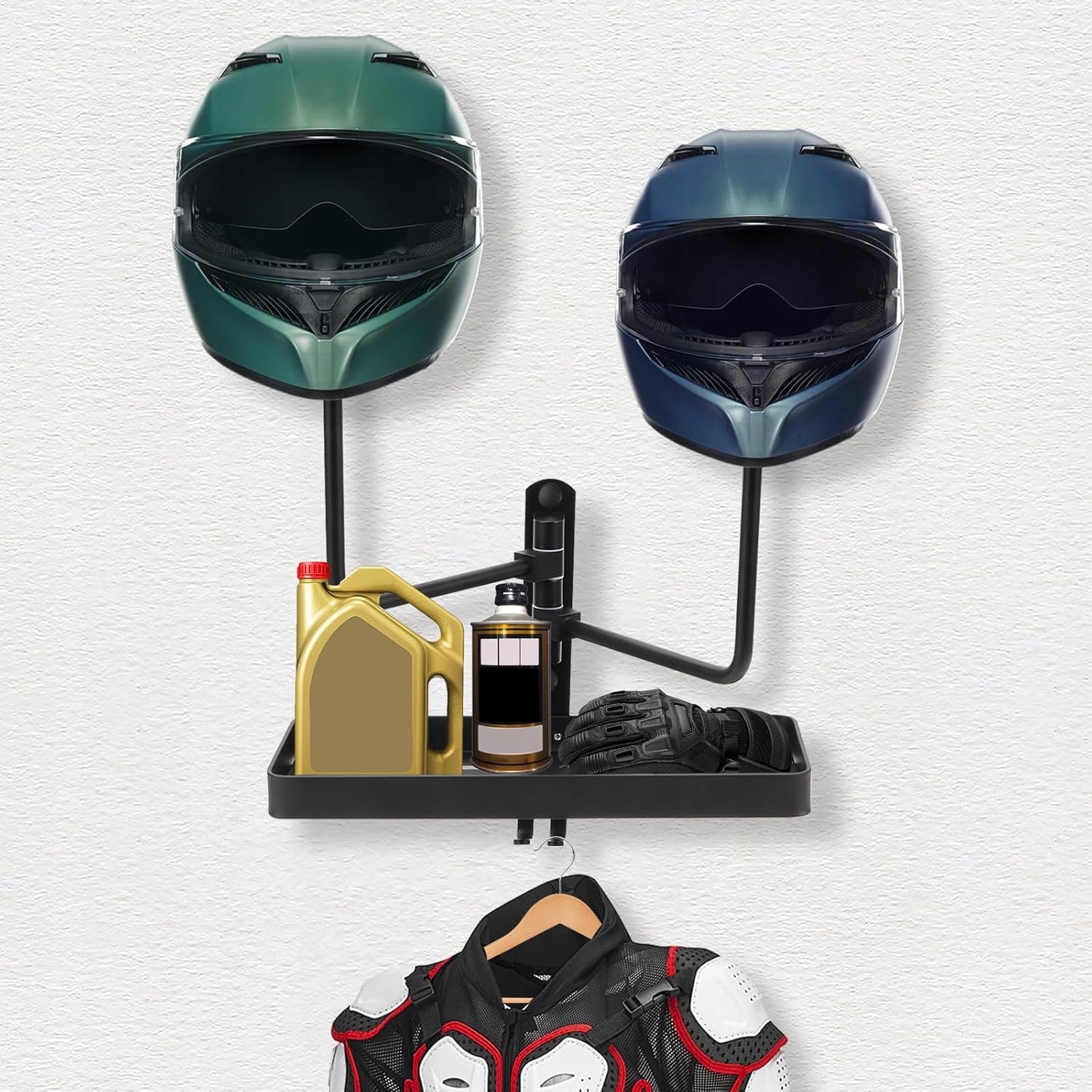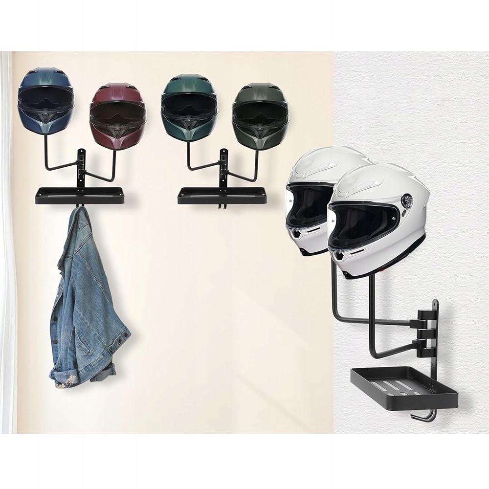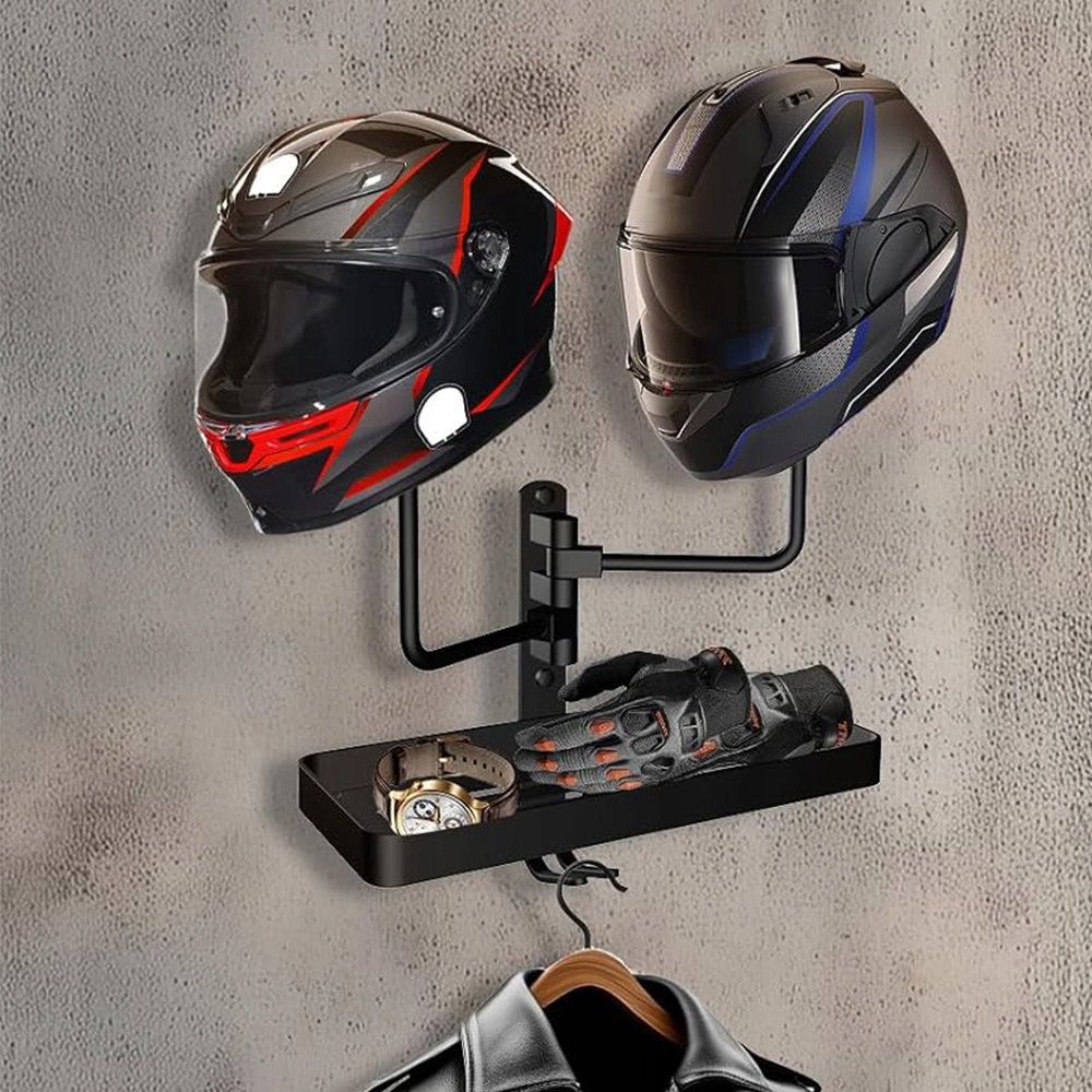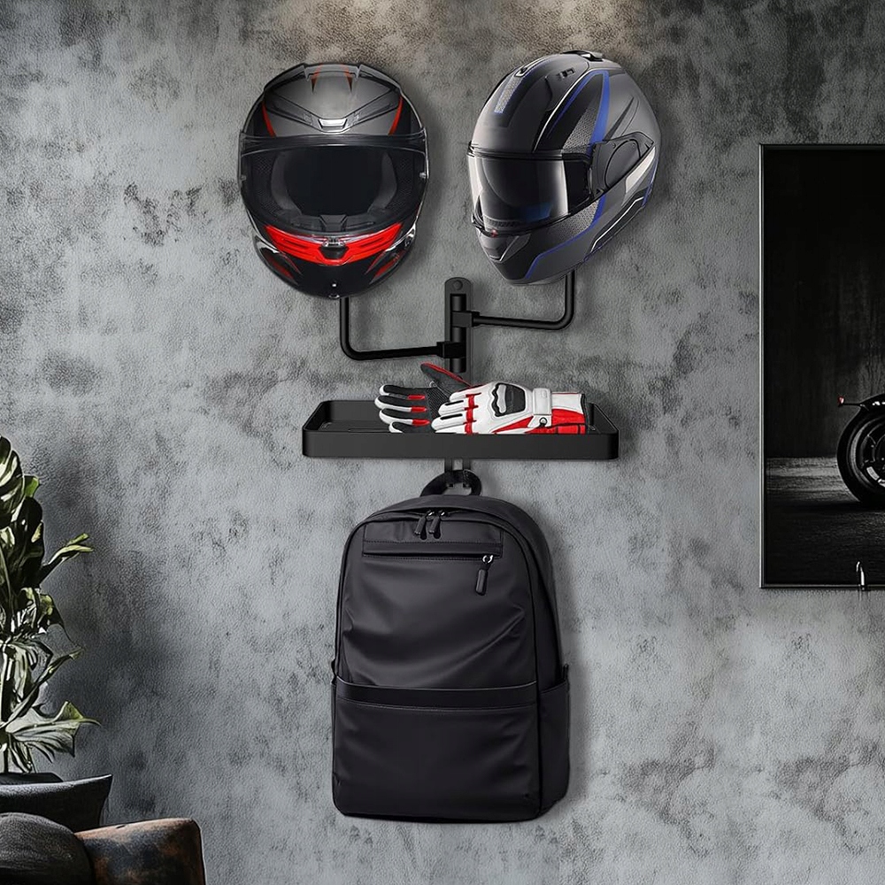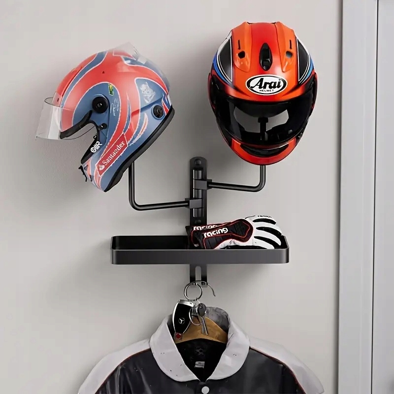НАСТЕННЫЙ ДЕРЖАТЕЛЬ ДЛЯ ШЛЕМА С 2 ГОЛОВКАМИ, ПОВОРОТНЫЙ НА 180°, С ПОЛКОЙ-ОРГАНИЗАТОРОМ