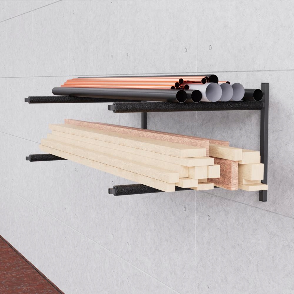 Универсальное решение для хранения древесины, труб, лестниц и инструментов в вашем гараже или подвале.