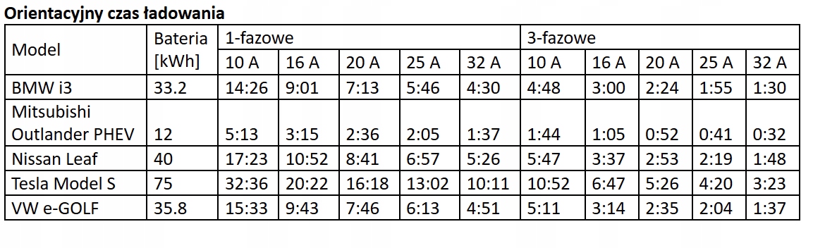 ПРИБЛИЗИТЕЛЬНОЕ ВРЕМЯ ЗАРЯДКИ ДЛЯ ОТДЕЛЬНЫХ МОДЕЛЕЙ