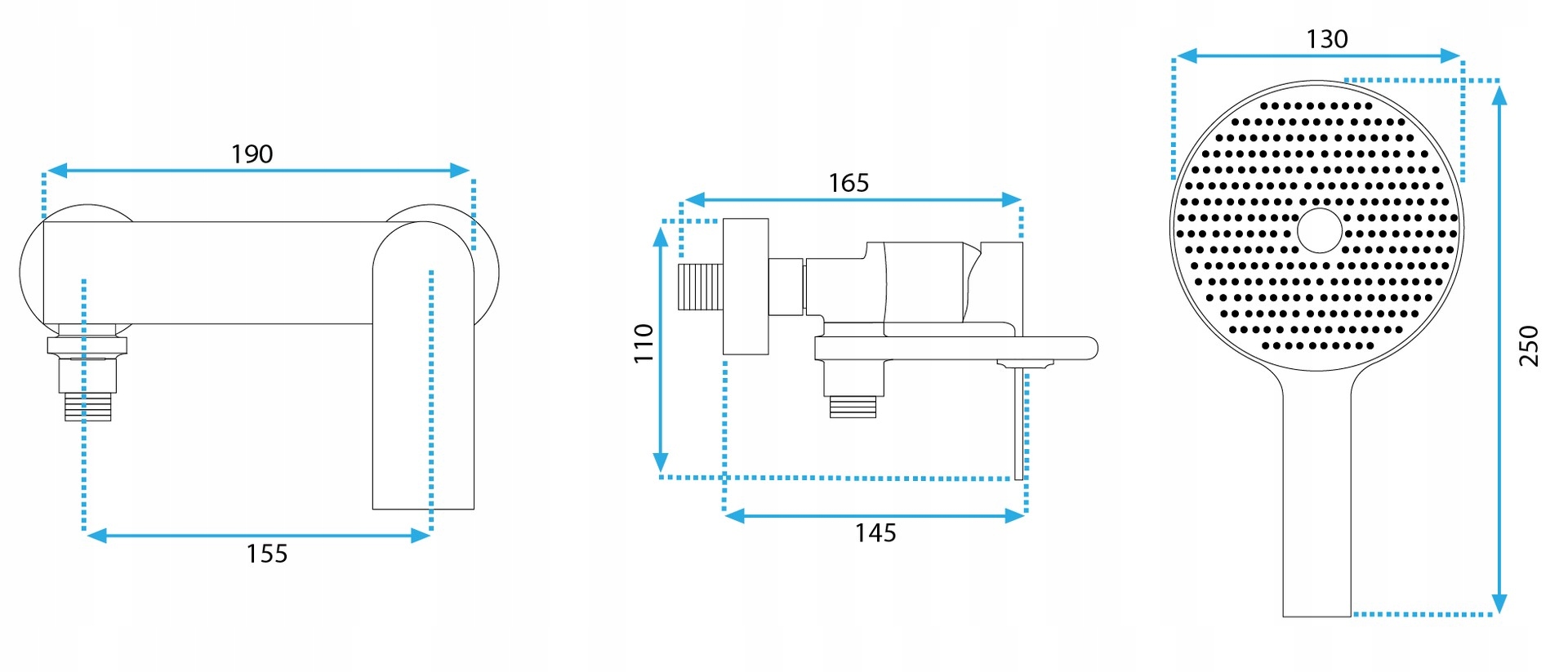 - Состав комплекта: Смеситель, душевой шланг, душевая трубка, держатель для душа, кулачки, крышки/li >