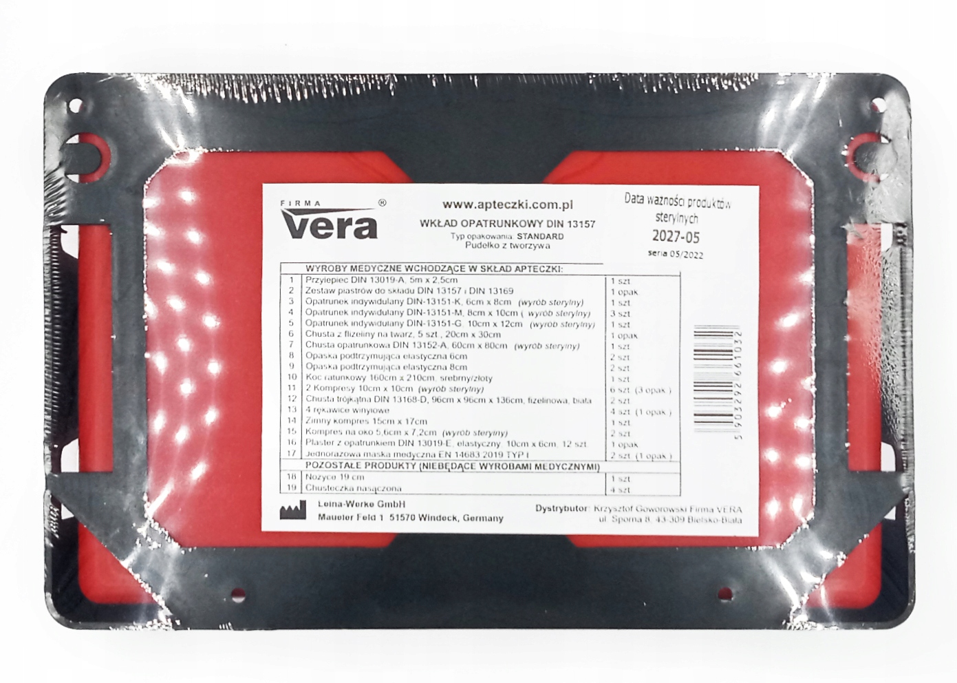 VERA - НАСТЕННАЯ ПРОМЫШЛЕННАЯ АПТЕЧКА ПЕРВОЙ ПОМОЩИ - СТАНДАРТ 13157 - СПЕЦИФИКАЦИЯ
