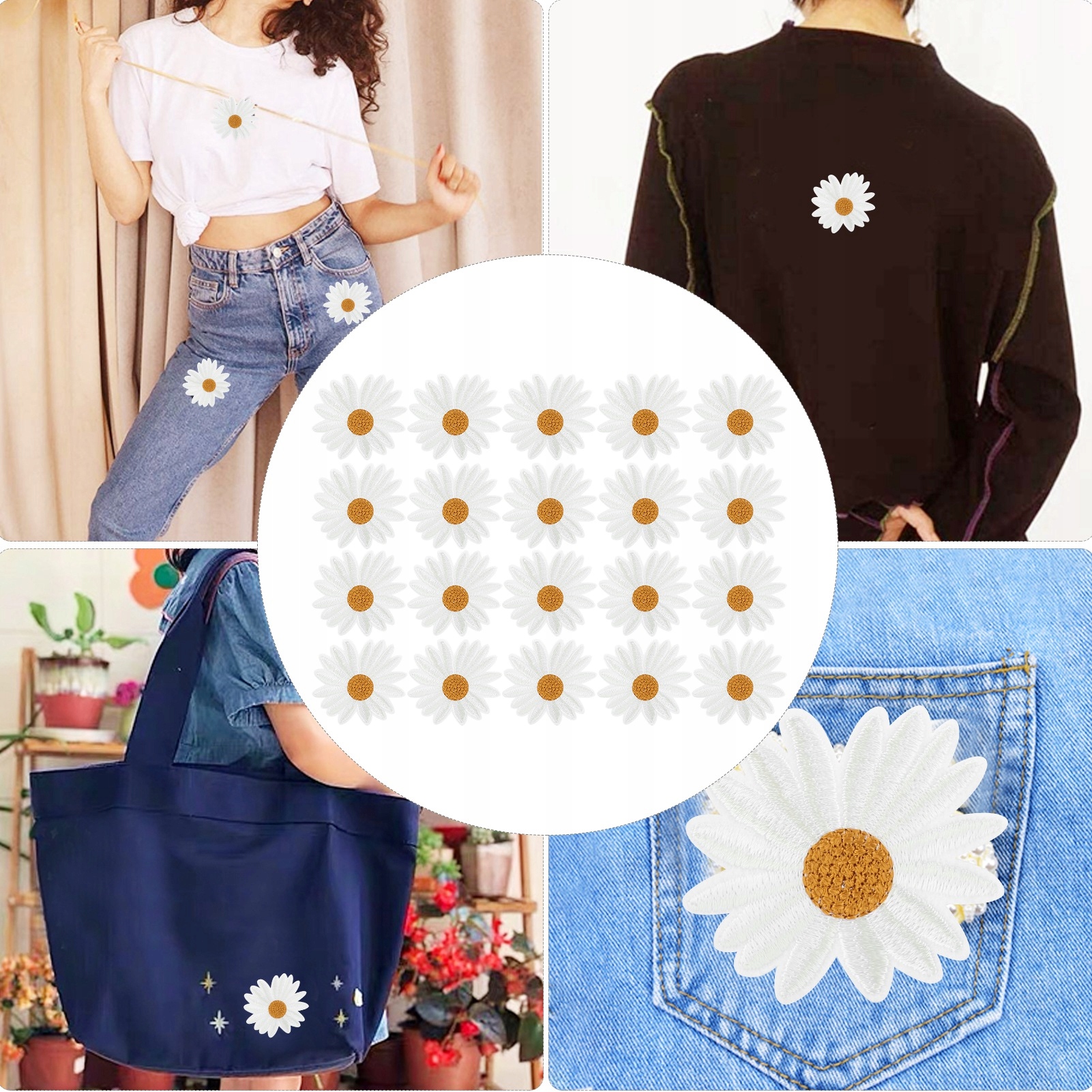 ЖЕЛЕЗНЫЕ ЗАШИВКИ РОМАШКИ ЦВЕТЫ УКРАШЕНИЯ ДЛЯ ОДЕЖДЫ НАБОР 20 ШТ.