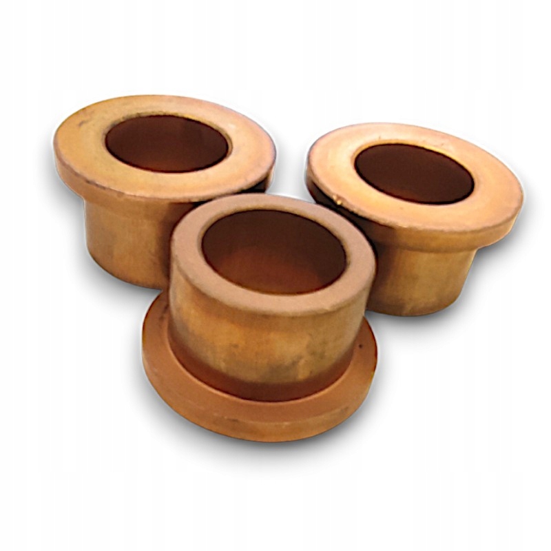 Втулки скользящие СИНТ с буртиком предназначены для эксплуатации в тяжелых условиях. Они обладают высокой стойкостью к истиранию и выдерживают очень большие нагрузки. Спеченные порошкообразные бронзовые втулки, пропитанные маслом, используются в механизмах, где смазка затруднена.