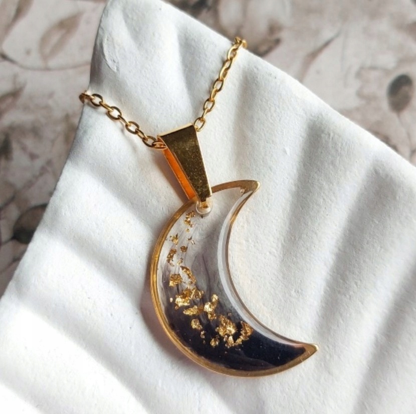 Naszyjnik księżyc z łańcuszkiem, stal chirurgiczna, czarno-złoty wisiorek