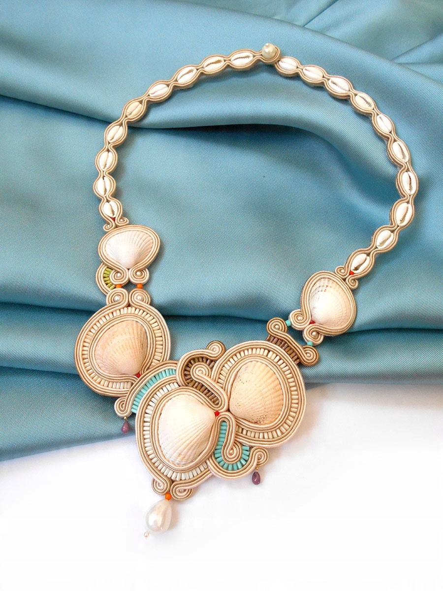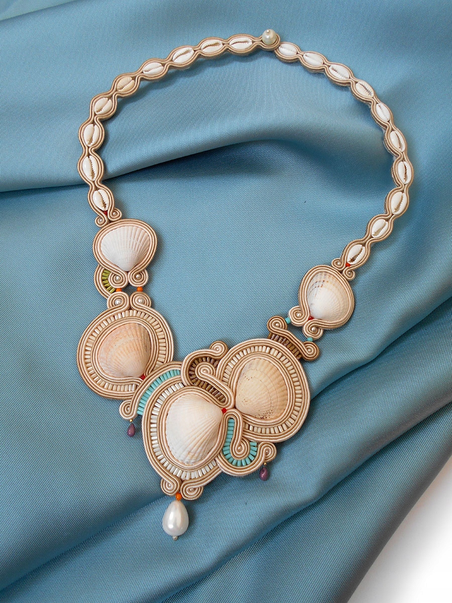 NASZYJNIK SUTASZ z muszelkami perłą 100% hand made