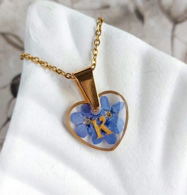 Naszyjnik z literą, małe złote serce z kwiatami, biżuteria personalizowana