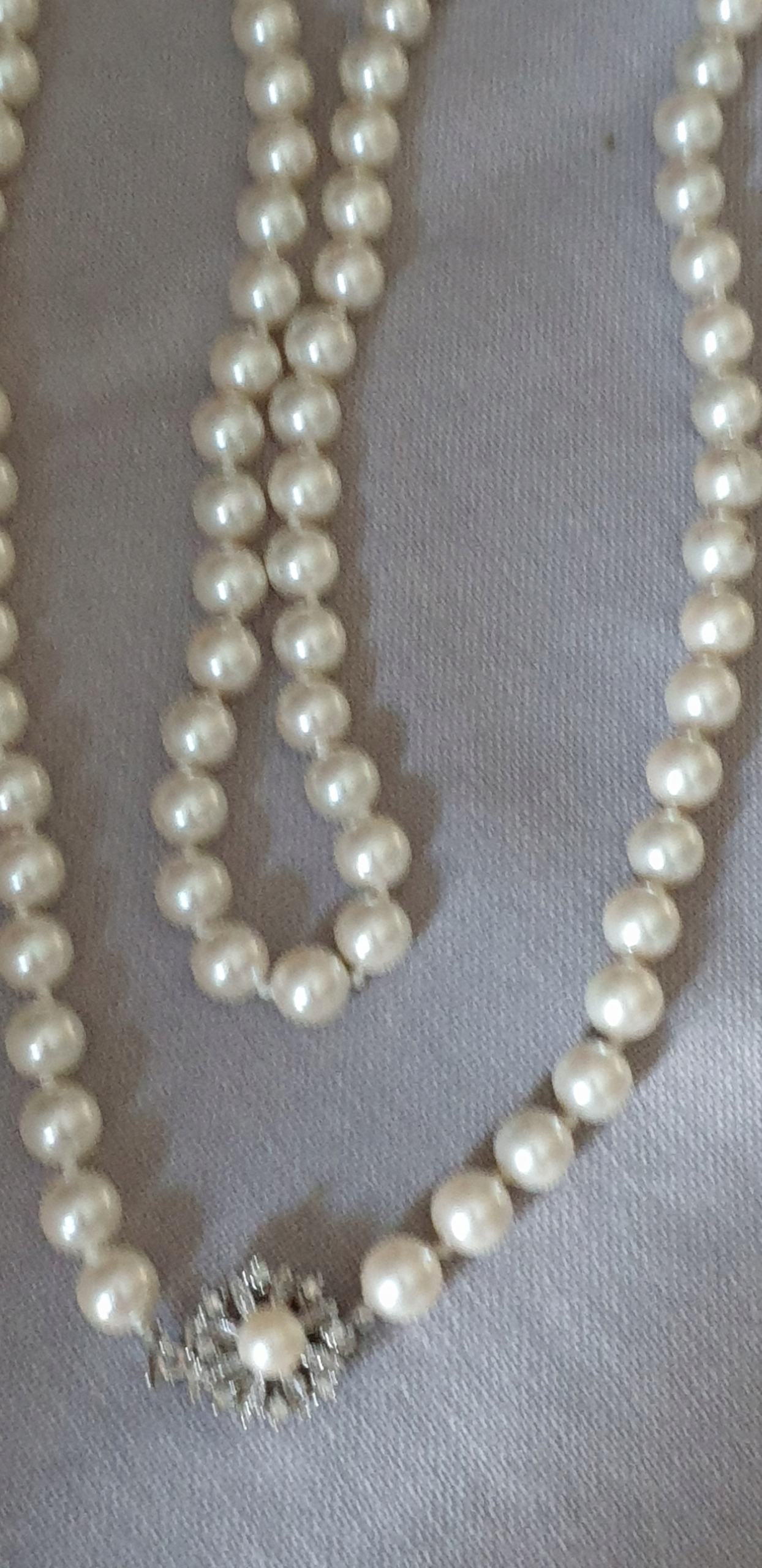 АНТИЧНОЕ ОЖЕРЕЛЬЕ С ЖЕМЧУГОМ С ДЕКОРАТИВНОЙ ЗАСТЕЖКОЙ, ЧУДЕСНО СОСТОЯЩЕЕ ИЗ ОДНОЙ НИТИ ЖЕМЧУЖНО-БЕЛОГО цвета, РЕКОМЕНДУЮ. РАЗМЕРЫ ДЛИНА 65 СМ, ДИАМЕТР ЖЕМЧУГА 0,5 СМ. РЕКОМЕНДУЮ