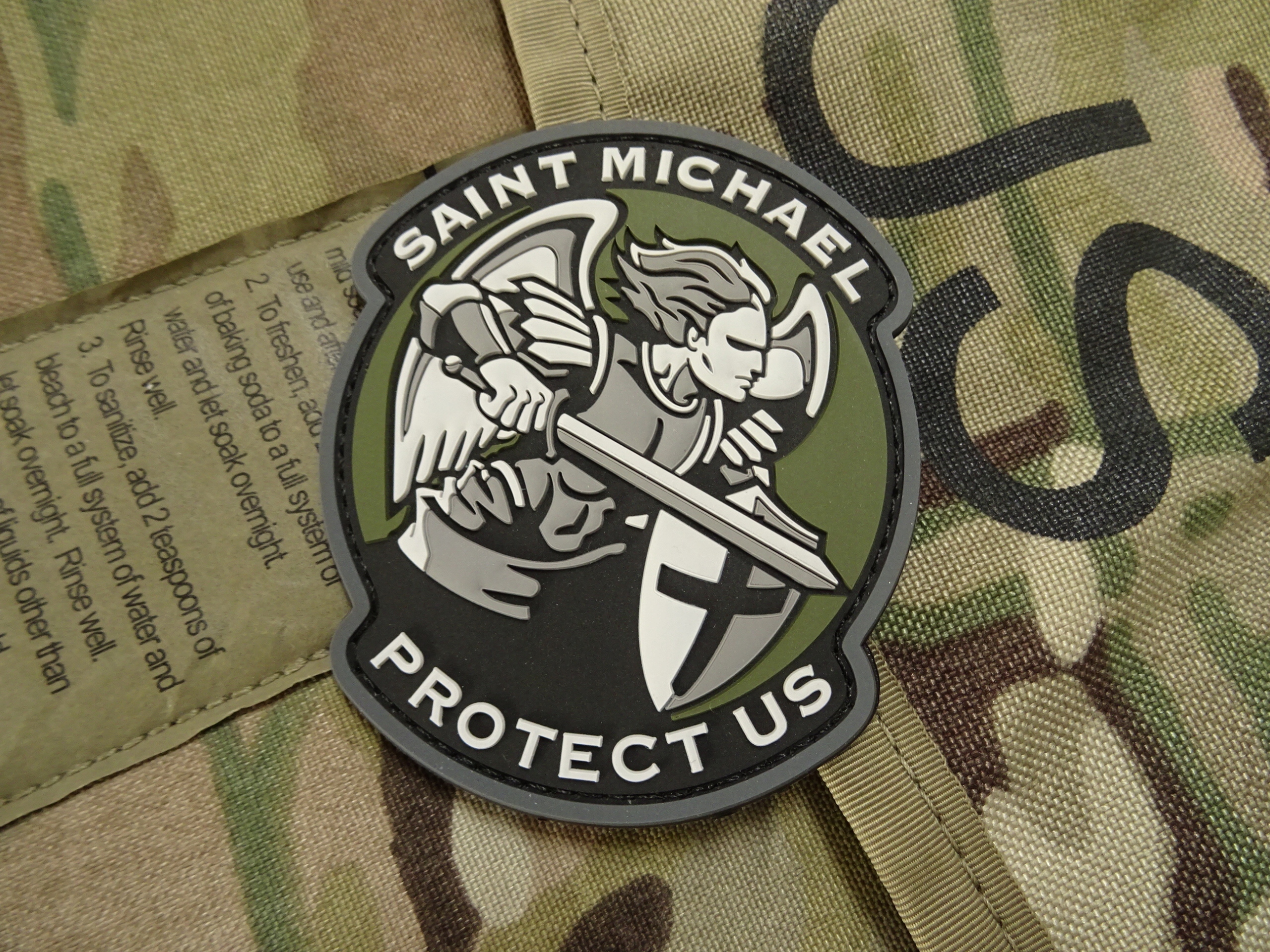 Naszywka SAINT MICHAEL PROTECT US - 3D PVC - RZEP - ZIELONY