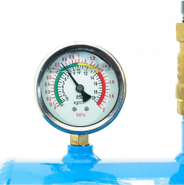 Важным элементом устройства является предохранительный клапан , управляющий давлением в резервуаре. С другой стороны, прозрачная и прозрачная датчик давления будет указывать на токовое давление накачанного воздуха.