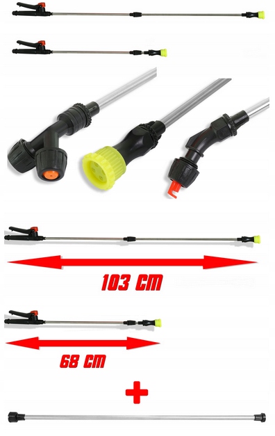 - дополнительно оснащен длинным усиленным шлангом, который позволяет легко и удобно достигать еще более высоких растений, в то время как распылитель давления будет стоять на земле или в инвалидной коляске.