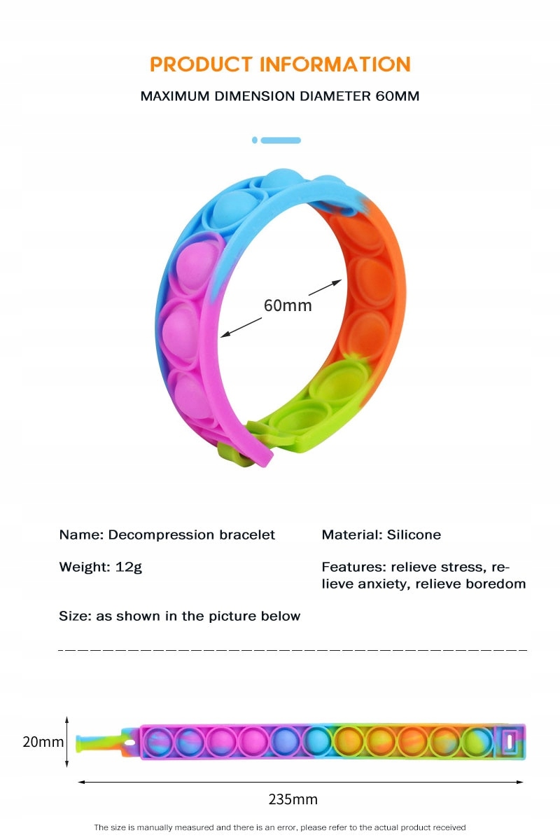 Этот предмет представляет собой комбинацию браслетов и более популярных игрушек пузырьковых пузырьков pop It b>. Сенсорная игрушка со свойствами пузырьковой фольги, пузырьки издают легкий звук после нажатия. Благодаря сенсорной игрушке вы испытаете ощущение расслабления и расслабления, что позволяет вам расслабиться на все стресс и успокоить эмоции.