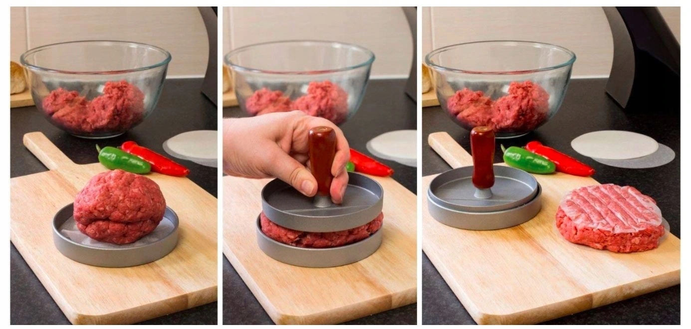 Это идеальное устройство, когда вы хотите сделать домашние гамбургеры или просто облегчить и ускорить подготовку традиционных фарш. мясо с любыми дополнениями