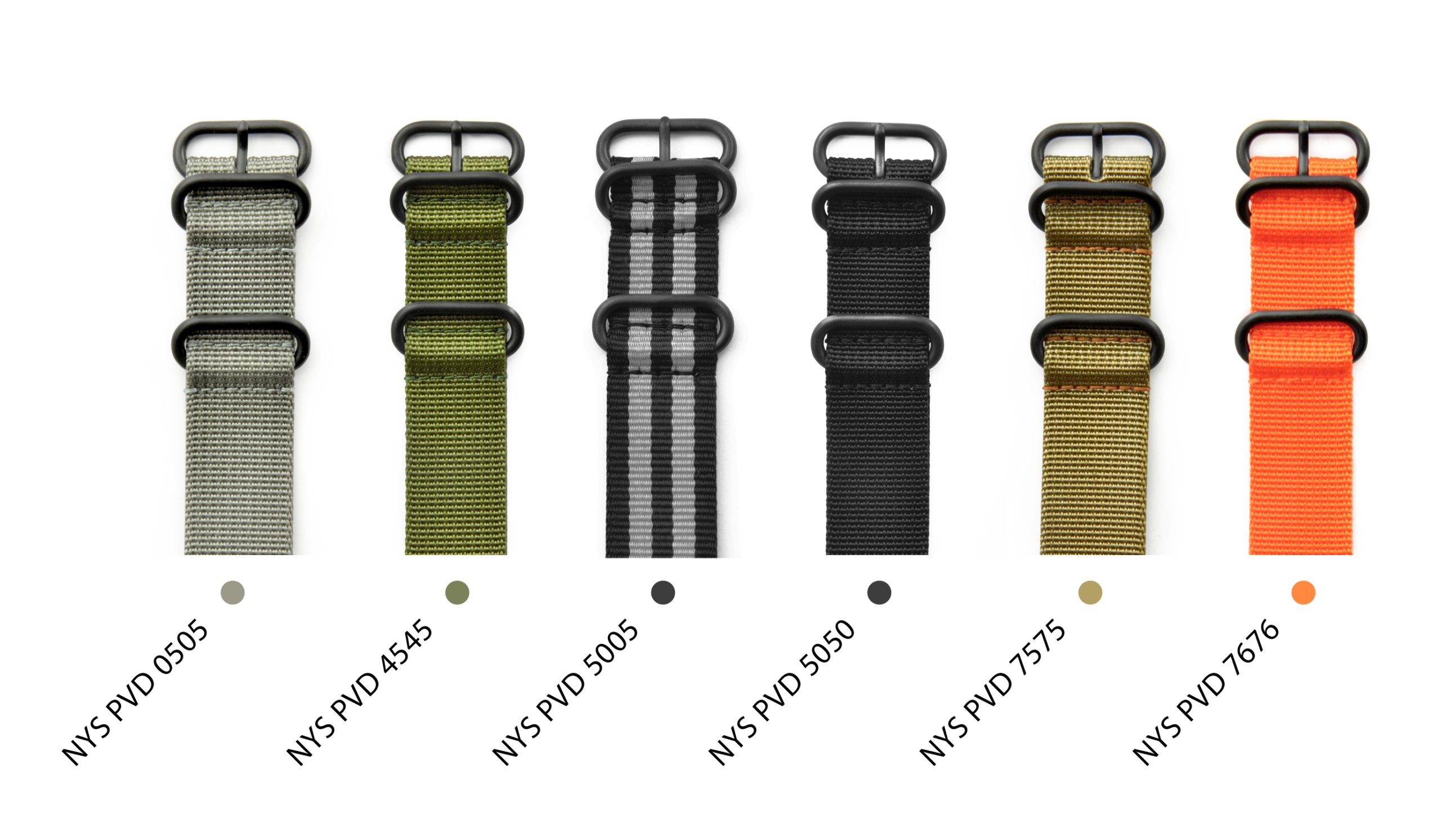 Нейлон PVD основания NATO изготовлен из толстого нейлона, благодаря которому он подходит для плавания. Он имеет стальную, массивную черную пряжку