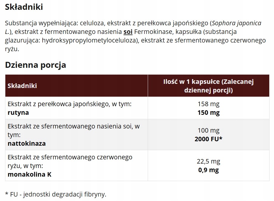 НАТТОКИНАЗА Фермокиназа 2000 FU, монаколин, рутин SKOCZYLAS