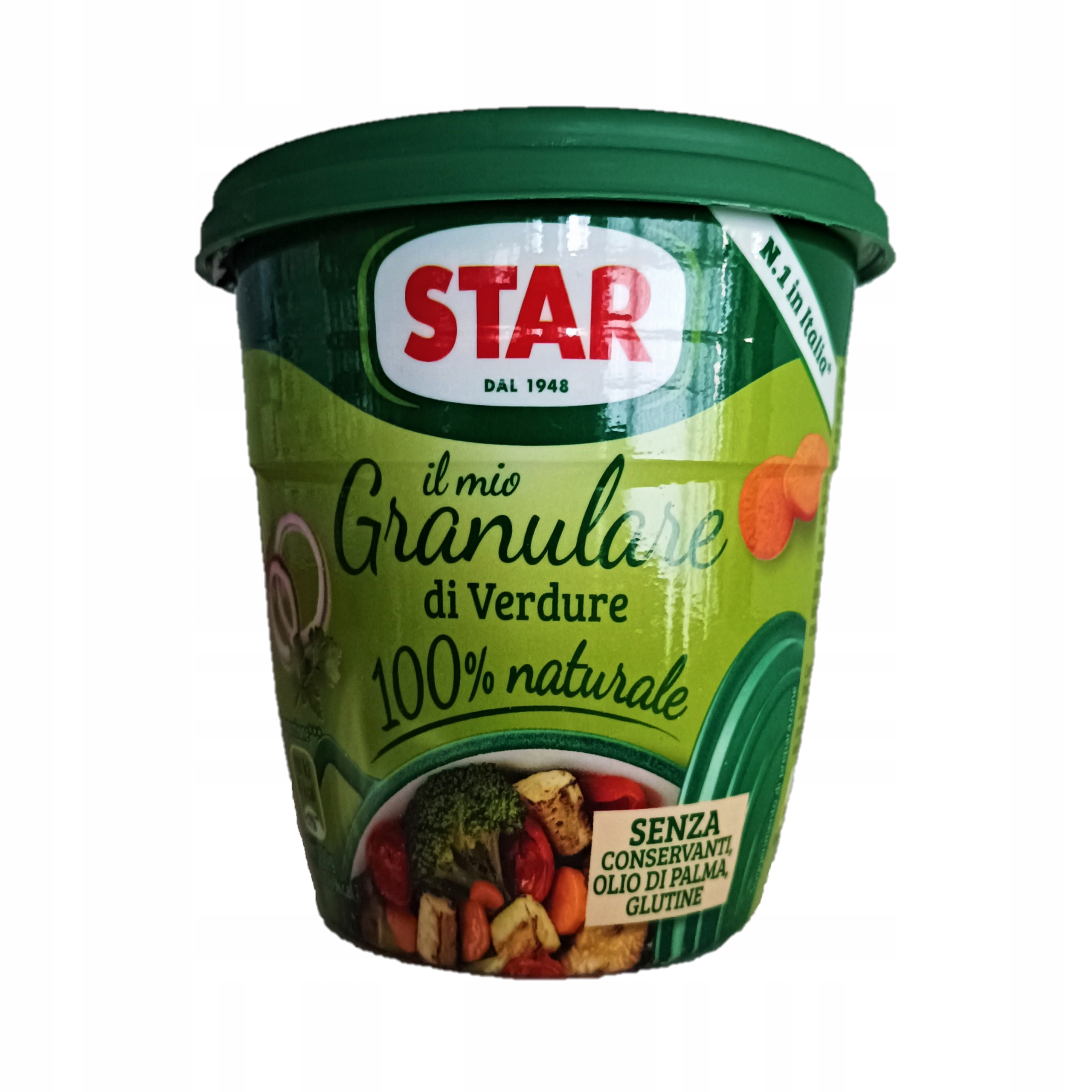 Star Granulare — итальянская приправа для мяса без глютамата натрия, консервантов и пальмового масла. Прекрасно усиливает вкус и придает аромат приготовленным, запеченным или жареным мясным блюдам. Идеально подходит для приготовления овощного бульона.