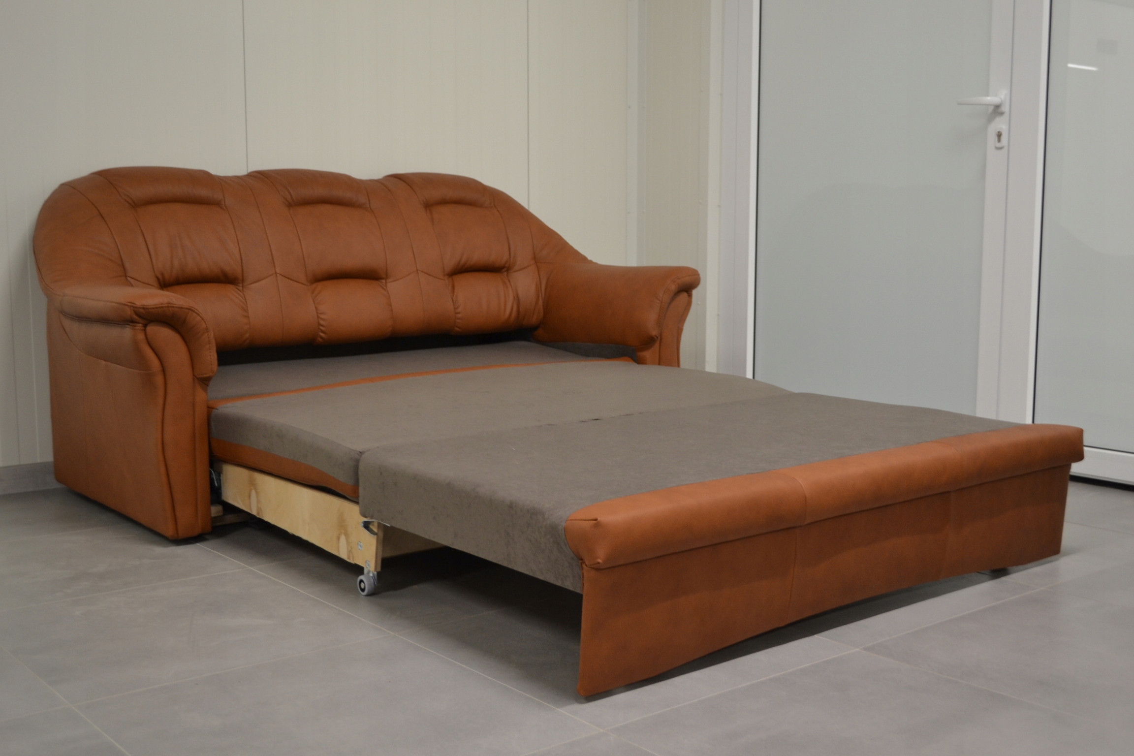 Как производитель мягкой мебели VALLDI MEBLE, мы предлагаем Вам диван и 2 кресла (комплект), очень добротно сделанные, функциональные и практичные, в который входит диван «HADDON» с выдвигающейся вперед спальной функцией и контейнером для постельное белье и 2 кресла FINKA на изогнутом каркасе с мягкими подлокотниками. Комплект выполнен из настоящей натуральной кожи по всему периметру (спинка и спинка в том числе), все в коже без вставок из экокожи, как это часто бывает у других производителей. Сиденье дивана на пружинах Bonnell.