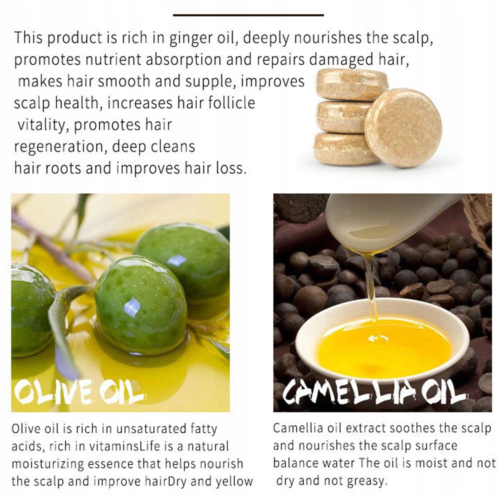 Улучшает качество волос. --- Шампунь для восстановления волос с имбирем увлажняет и восстанавливает поврежденные волосы/способствует росту волос и предотвращает их выпадение/против перхоти, уменьшает зуд кожи головы.