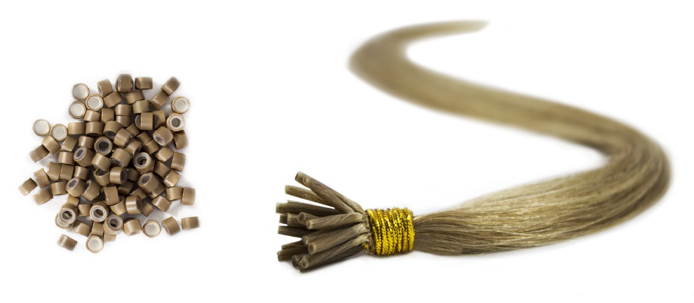 Пряди можно наращивать, в частности, с помощью гильз, микроколец с ниткой, гильз с силиконом, микроколец с силиконом и т. д.