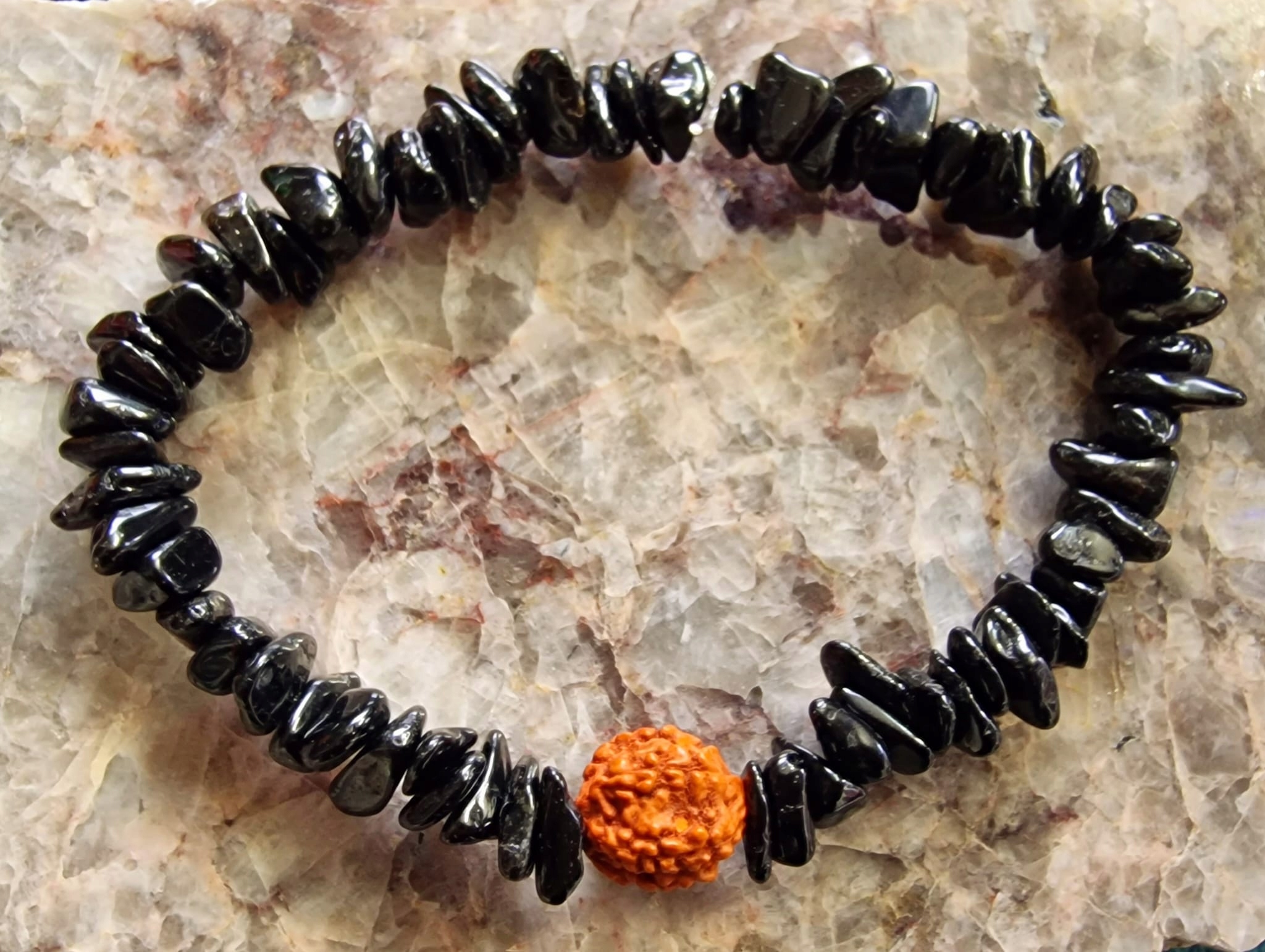 На фото пример браслета с Черным турмалином + Рудраша.