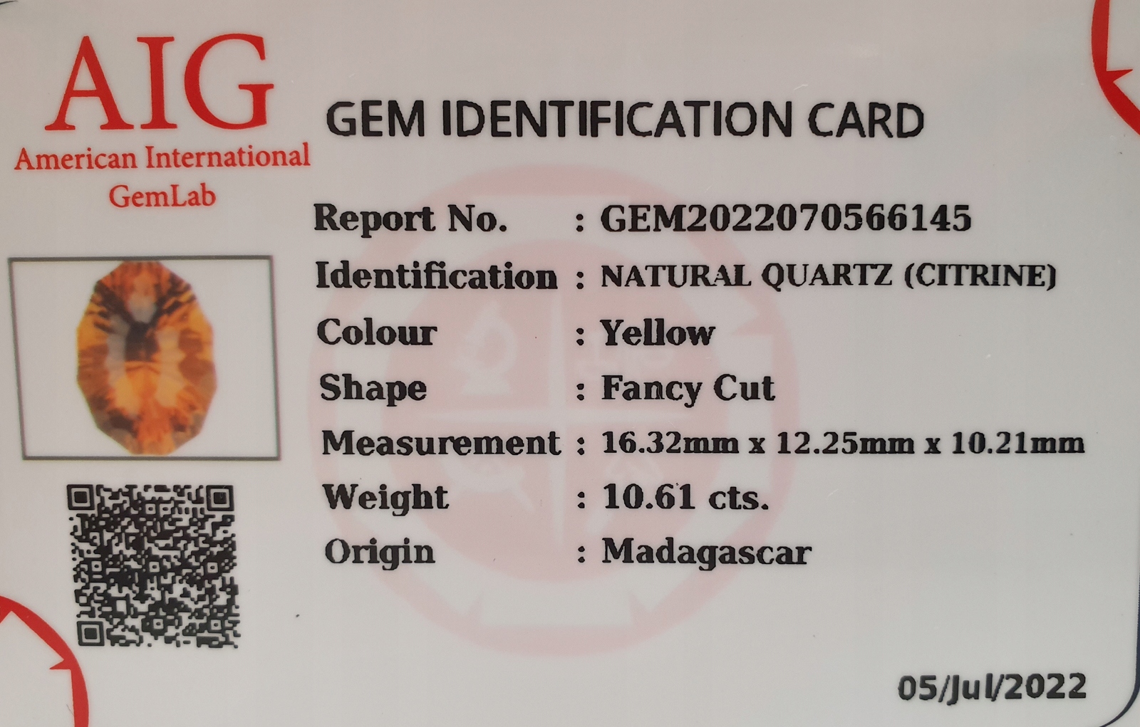 Натуральный цитрин 10,61 карата + сертификат