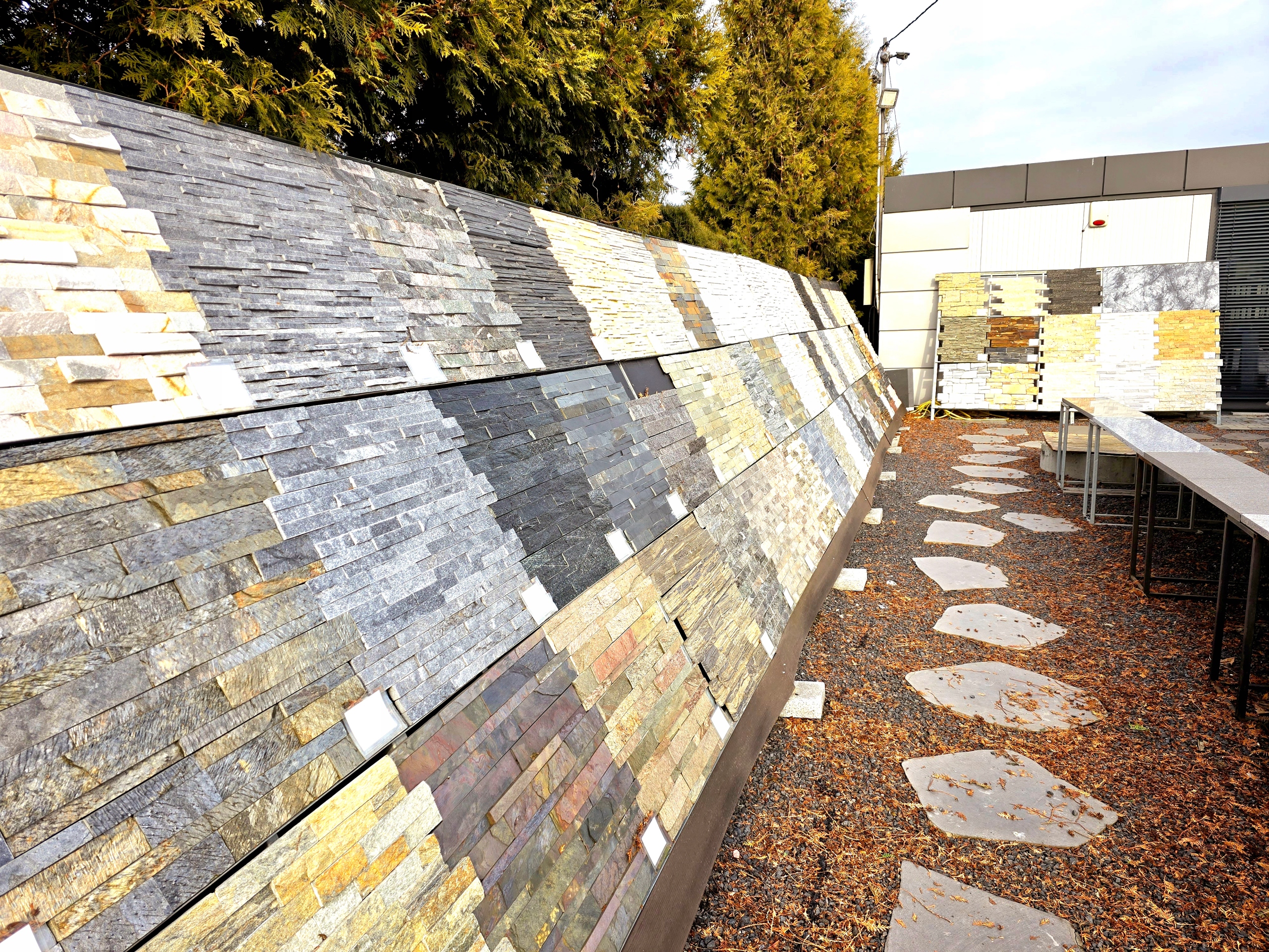 Представленные панели представляют собой модульную систему декоративных камней из натурального камня. Каждая панель состоит из камней, соединенных между собой специальной смолой, образующих Z-образный модуль. Его размеры обычно составляют 15 см х 55 см/60 см. Благодаря Z-образной форме обеспечивается невидимое соединение между отдельными каменными панелями на стене.