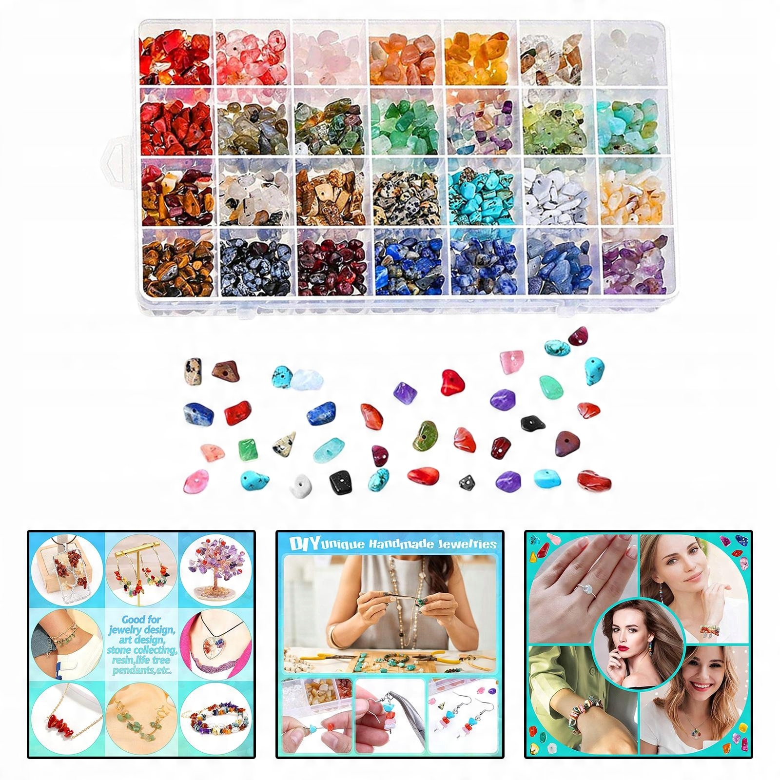 Все эти бусины, сделанные из драгоценных камней, помещены в коробку, что облегчает хранение и складывание!