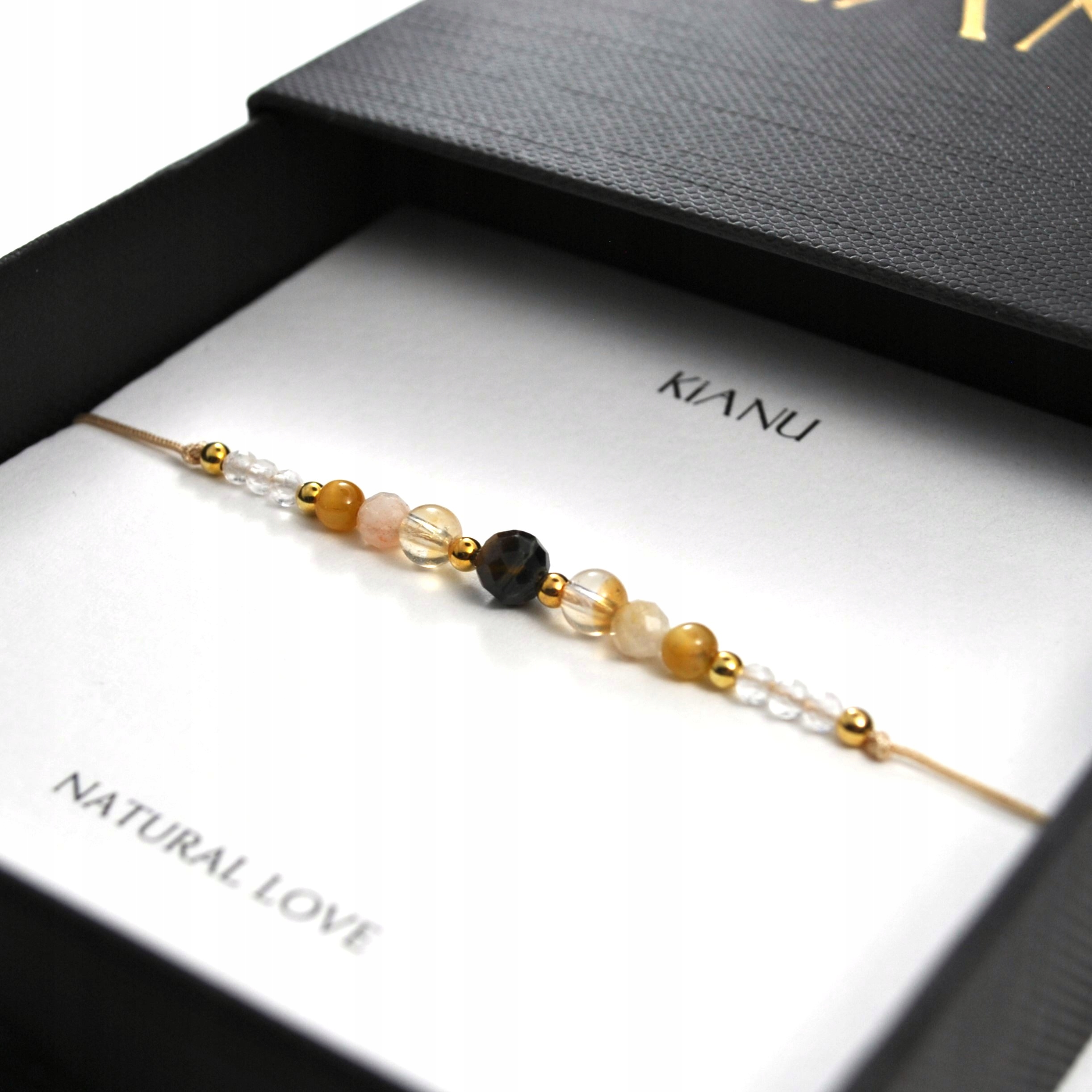 Браслет на струне, изготовленной из естественных камней лимона, тигрового глаз и горного кристалла, представляет собой комбинацию камней, которые поддерживают успех, уверенность, оптимизм и внутреннюю гармонию.