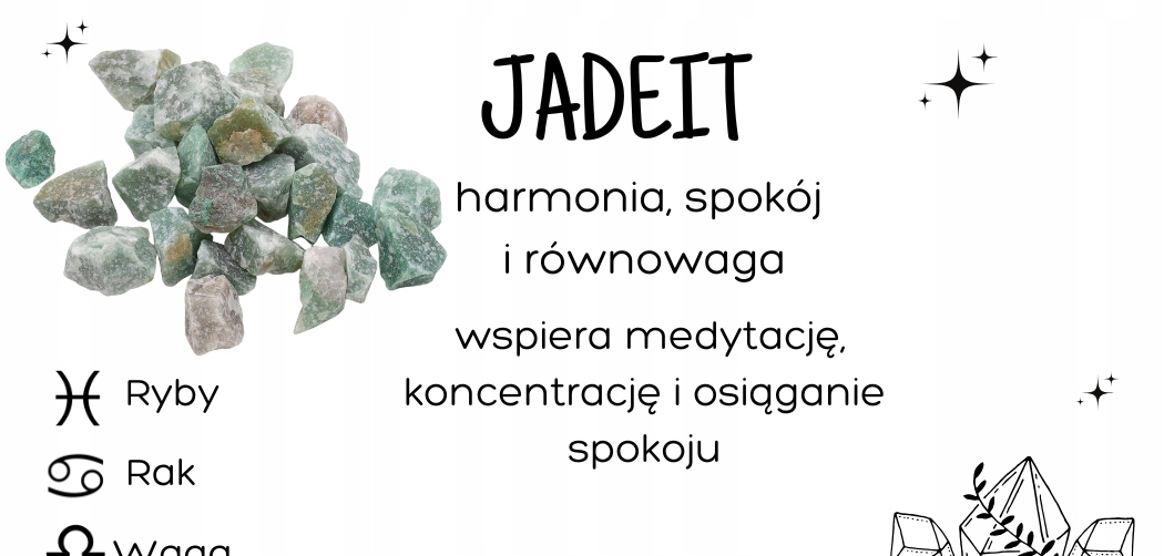 Jadeit - это камень с интенсивным зеленым цветом, известный своей красотой и духовными свойствами. Jadeit ценится за его свойства, связанные с гармонией, спокойствием и балансом. Часто используется в духовных практиках для поддержки медитации, концентрации и достижения мира.