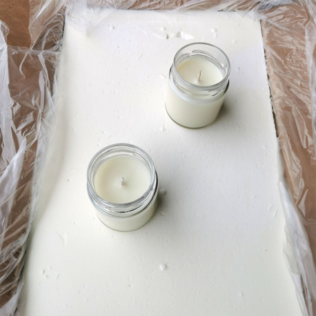 - ✅Соевый кокосовый воск чаще всего используется в контейнерных свечах, поскольку у него более низкая температура плавления, чем у традиционного воска.