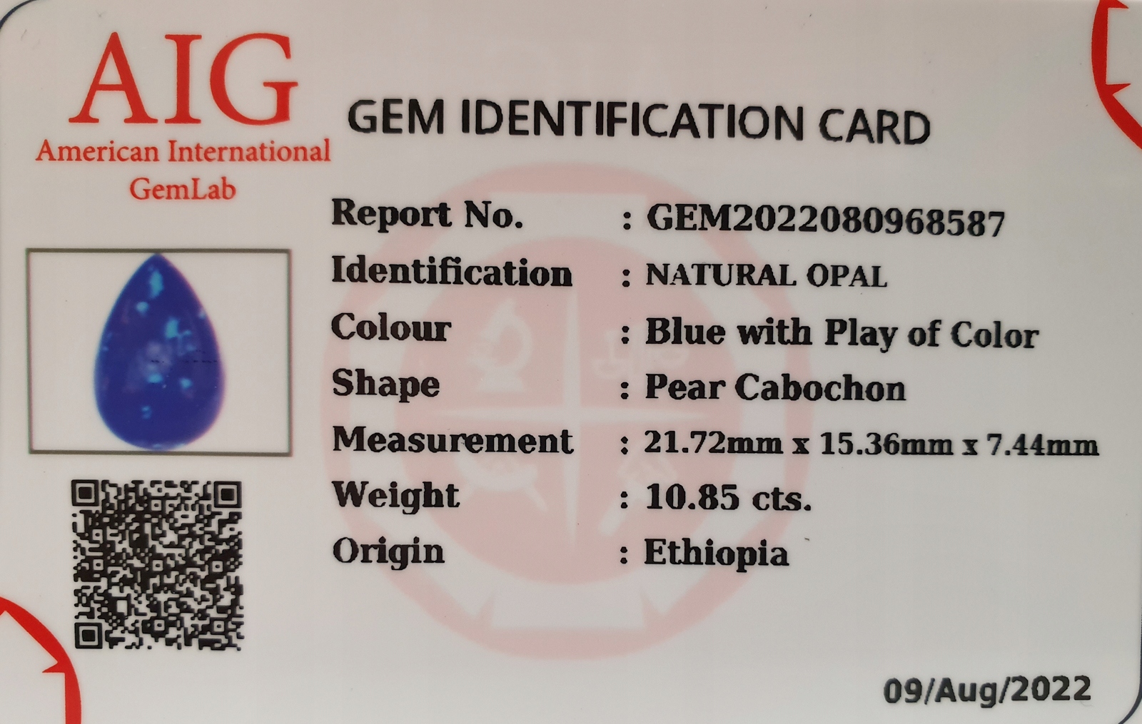 Натуральний опал 10,85 карата + Сертифікат