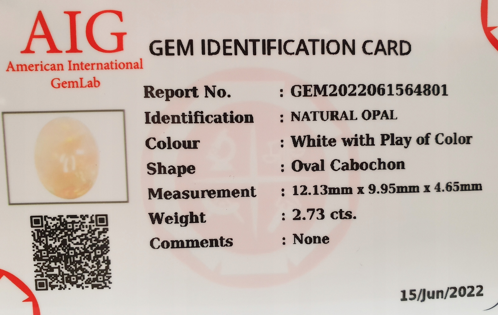 Натуральний опал 2,73 карата + Сертифікат
