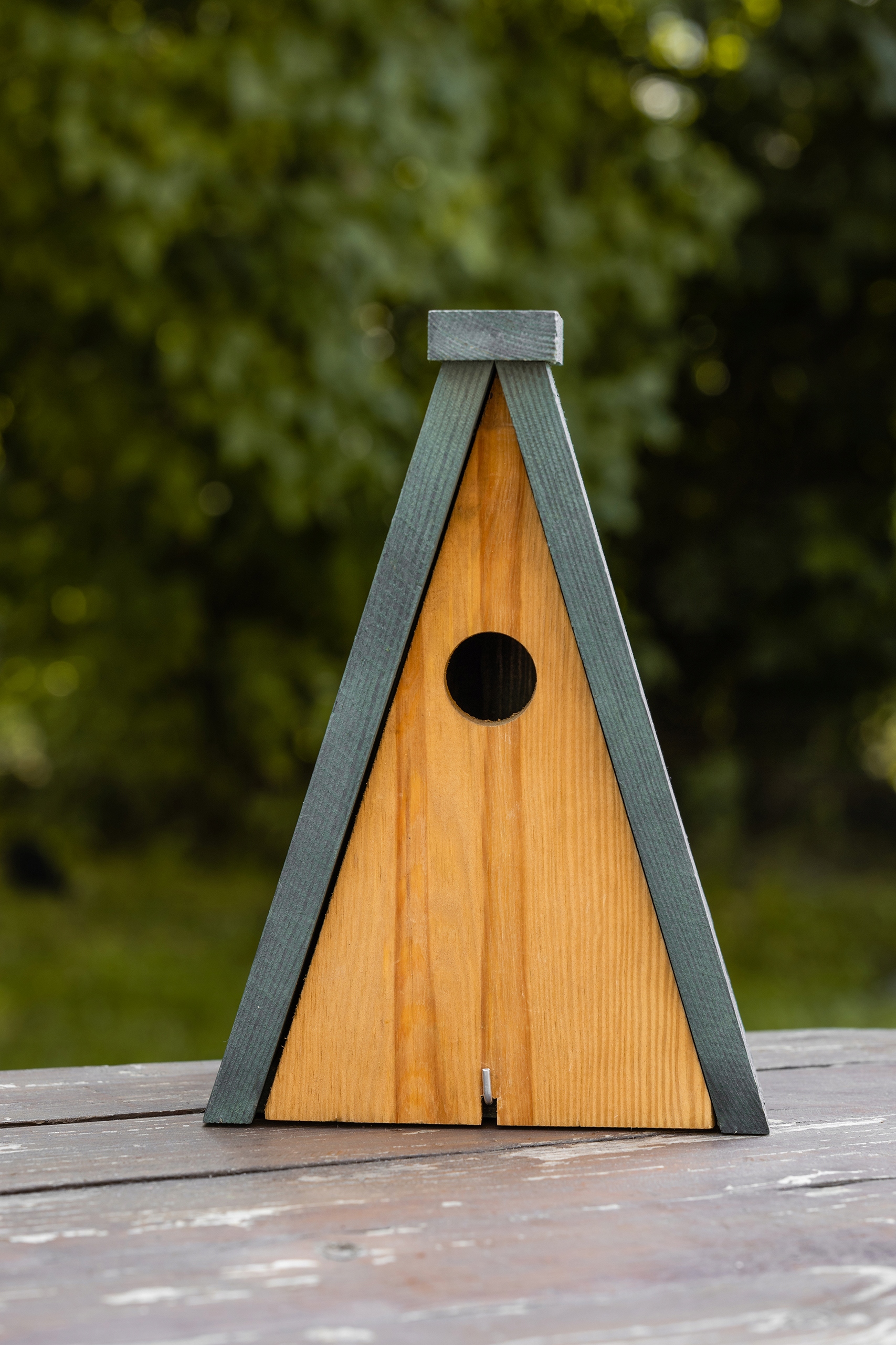 Предоставьте ваших красивых крылатых друзей удобно гнездование благодаря нашей очаровательной кабине размножения. Это уютное пространство имеет форму треугольного дома с крышей в оттенках зеленого цвета, создавая не только безопасное , но и эстетическое место для птиц.