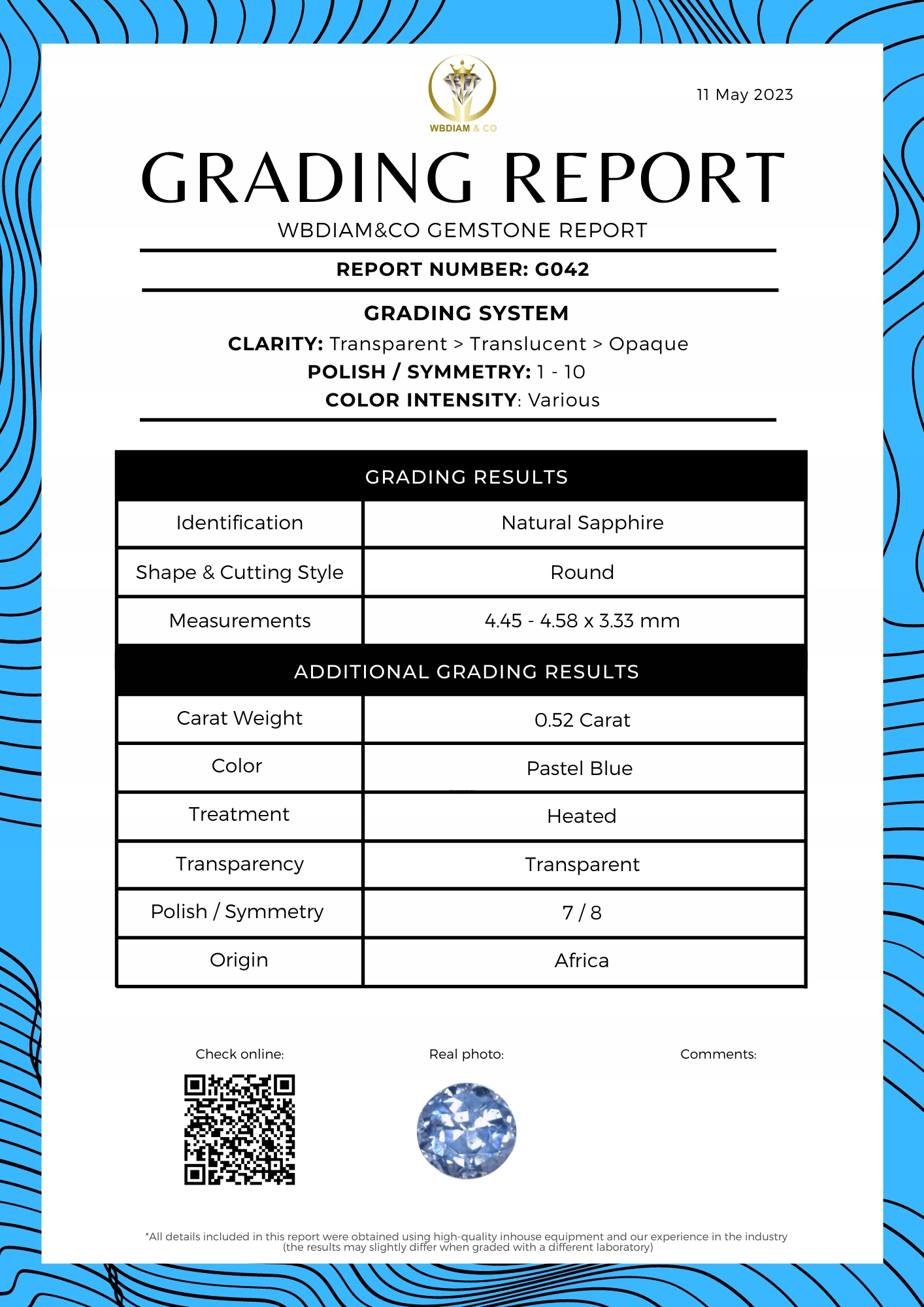 Натуральний сапфір - 0,52 карата - синій - круглий