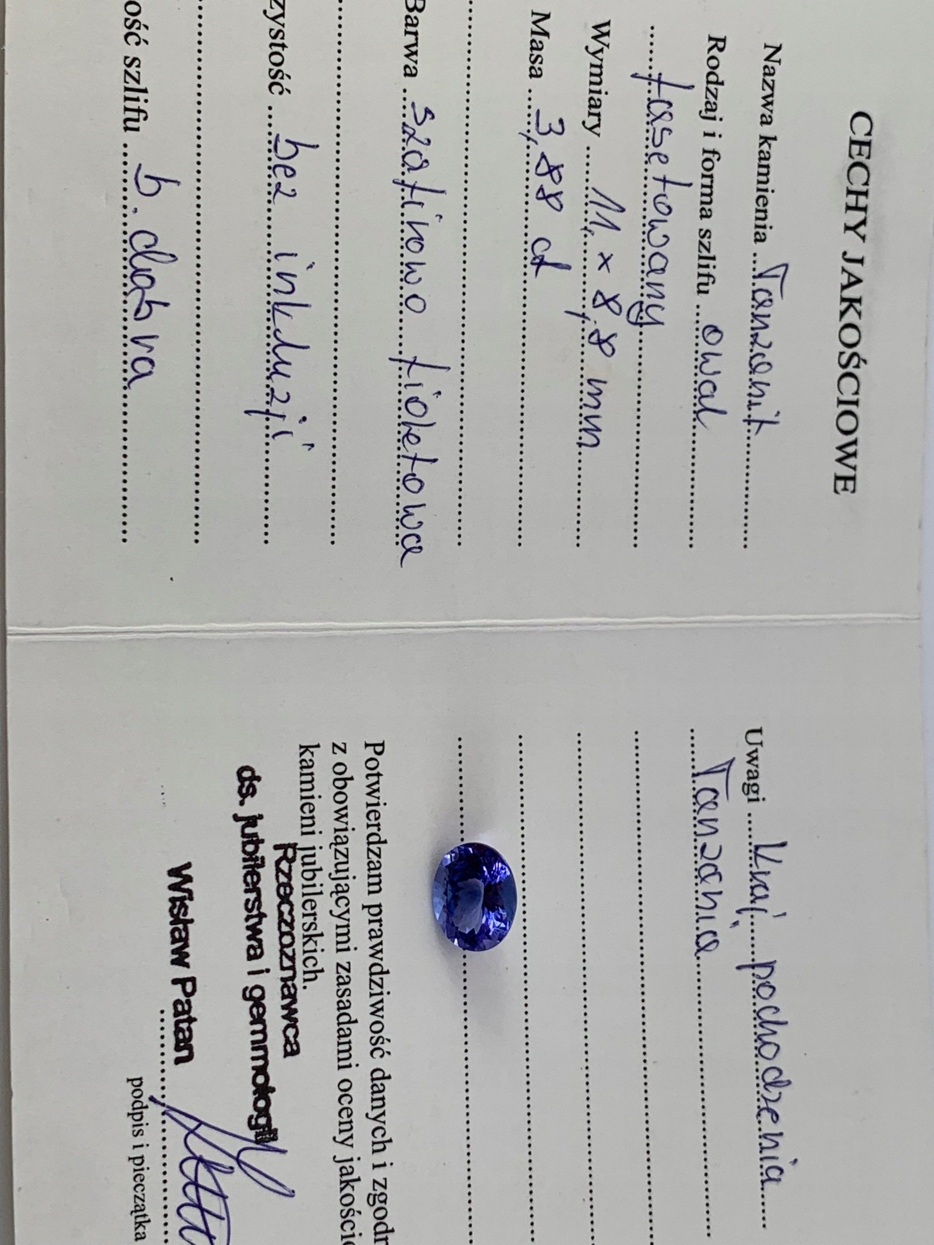 НАТУРАЛЬНИЙ ТАНЗАНІТ овал 11 X8.8 3.88 CT СЕРТИФІКАТ