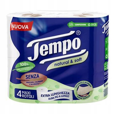 Туалетная бумага натуральных темпов 4 макси -ролики