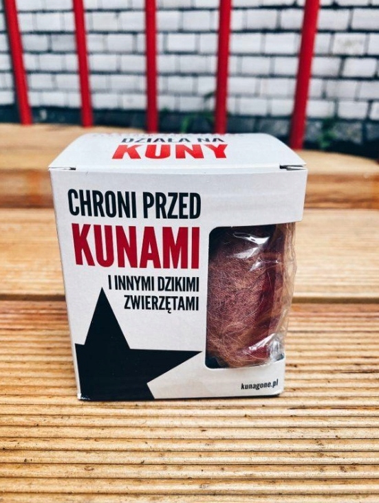 Вы эффективно защитите электроустановку в автомобиле и доме от диких животных. Вам больше не придется беспокоиться о перекушенных электрических кабелях под капотом вашего автомобиля. Натуральный репеллент Котарбау используется везде, где нежелательно присутствие куниц и других диких животных, например, в автомобиле, на чердаке или чердаке. Купив Кунагоне, вы избежите крупных и проблемных повреждений.