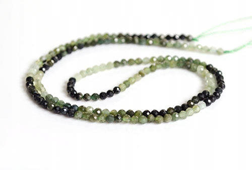 Naturalny TURMALIN zielony kulki kuleczki Kulka faset 2mm sznur