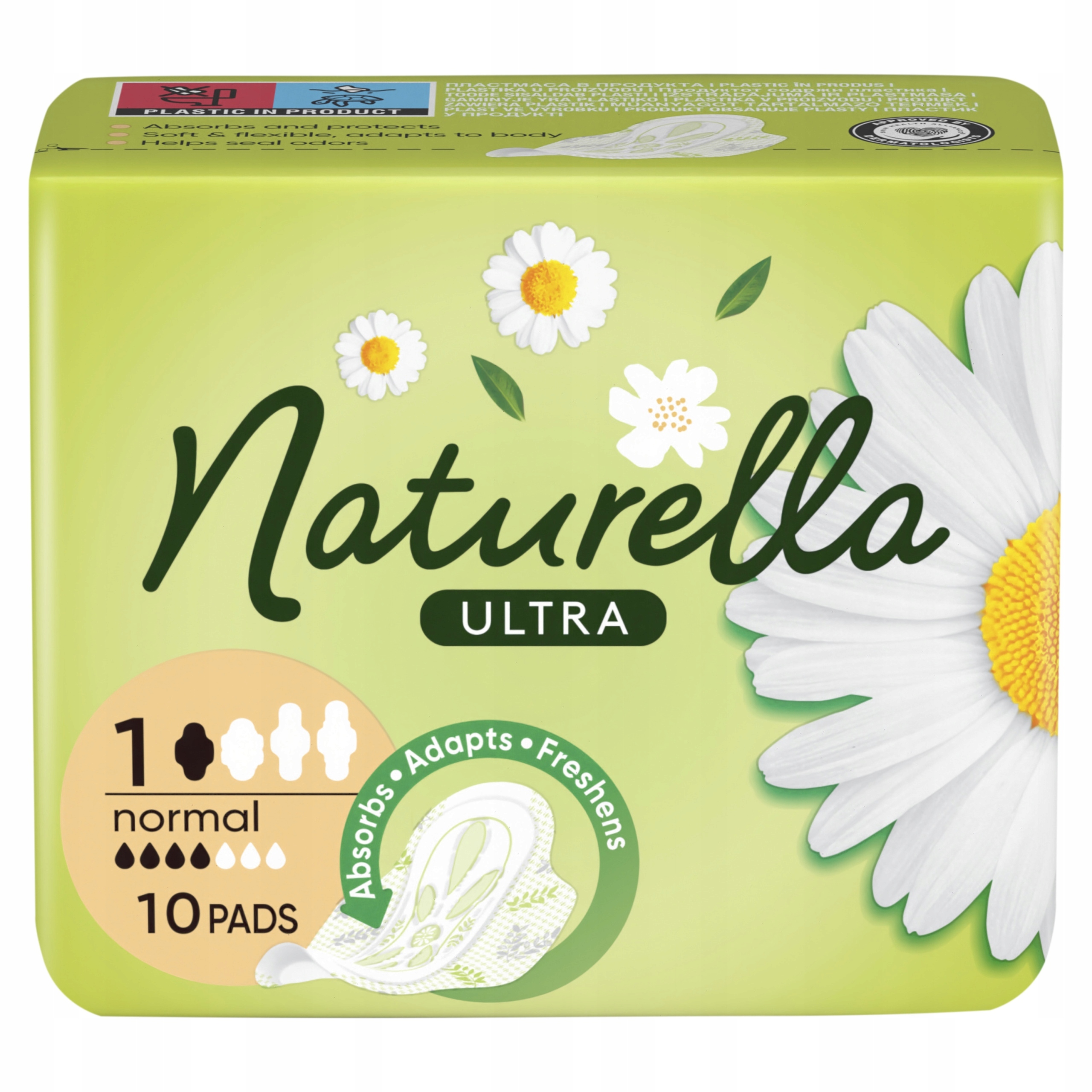 Прокладки Naturella Ultra Normal с крылышками оснащены усиленной впитывающей вставкой, оставаясь при этом мягкими и ухаживающими за кожей в интимных зонах. Это единственные средства женской гигиены, содержащие Dermacrem — сухой бальзам, который, как доказано, предотвращает раздражение кожи. Гигиенические прокладки Naturella Ultra тонкие и имеют усиленную впитывающую основу, которая отводит влагу от кожи, обеспечивая сухость и комфорт. Доступны ароматы, вдохновленные ромашкой, зеленым чаем и календулой для большей свежести.