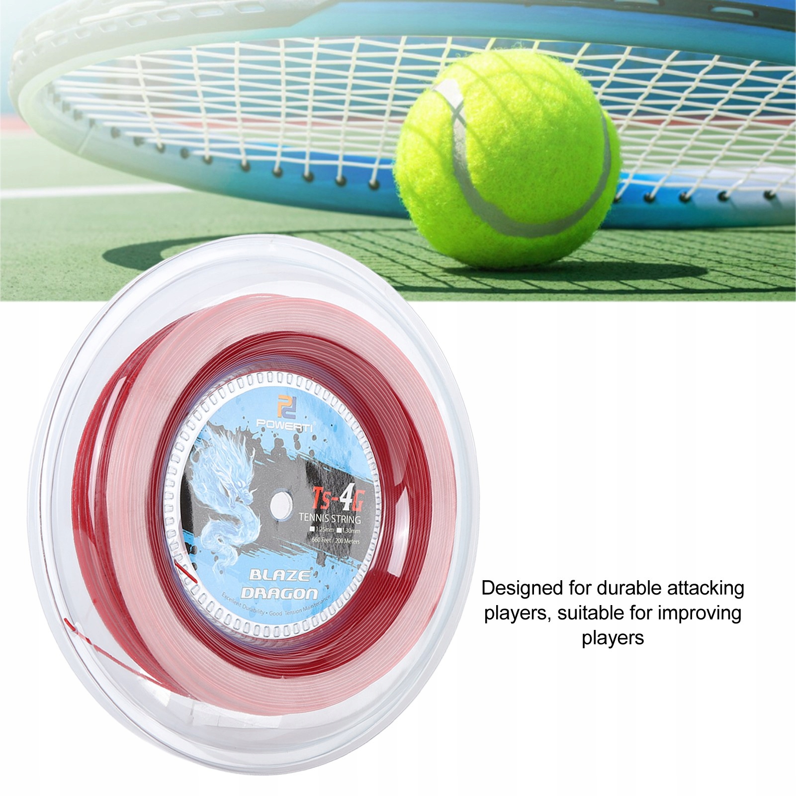 2. Тема: 200 М Теннисное напряжение предназначено для долговечных атакующих игроков, подходящих для улучшенных игроков, подходящих для всех типов людей.
