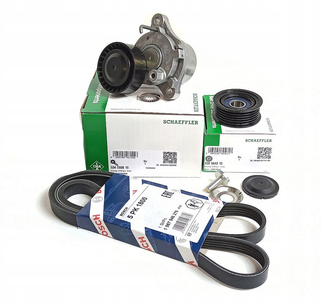 Новый натяжной ролик с роликом, направляющим роликом INA и многоканальным ремнем Bosch — замена высшего качества — цена за комплект.