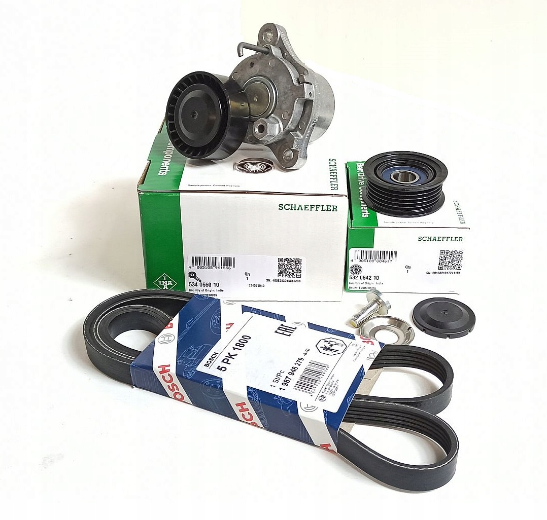 Новый натяжитель с роликом, направляющим роликом INA и многоканальным ремнем Bosch — замена высшего качества — цена за комплект.