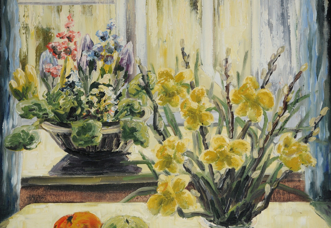 НАТЮРМОРТ З НАРЦИСАМИ ЧУДОВИЙ КАРТИНА МАСЛОМ!