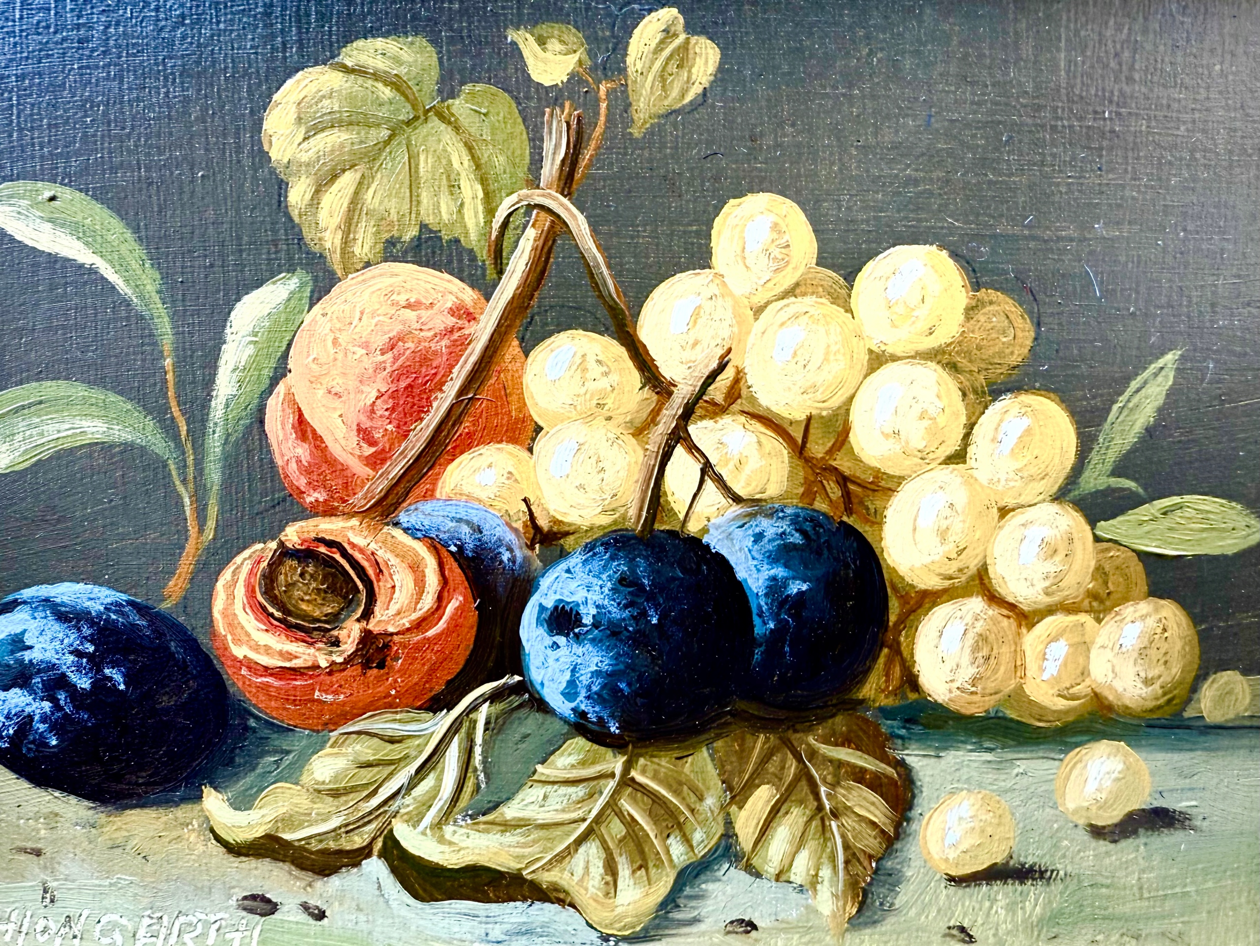 Натюрморт с виноградом и персиками- красивая картинка и рамка