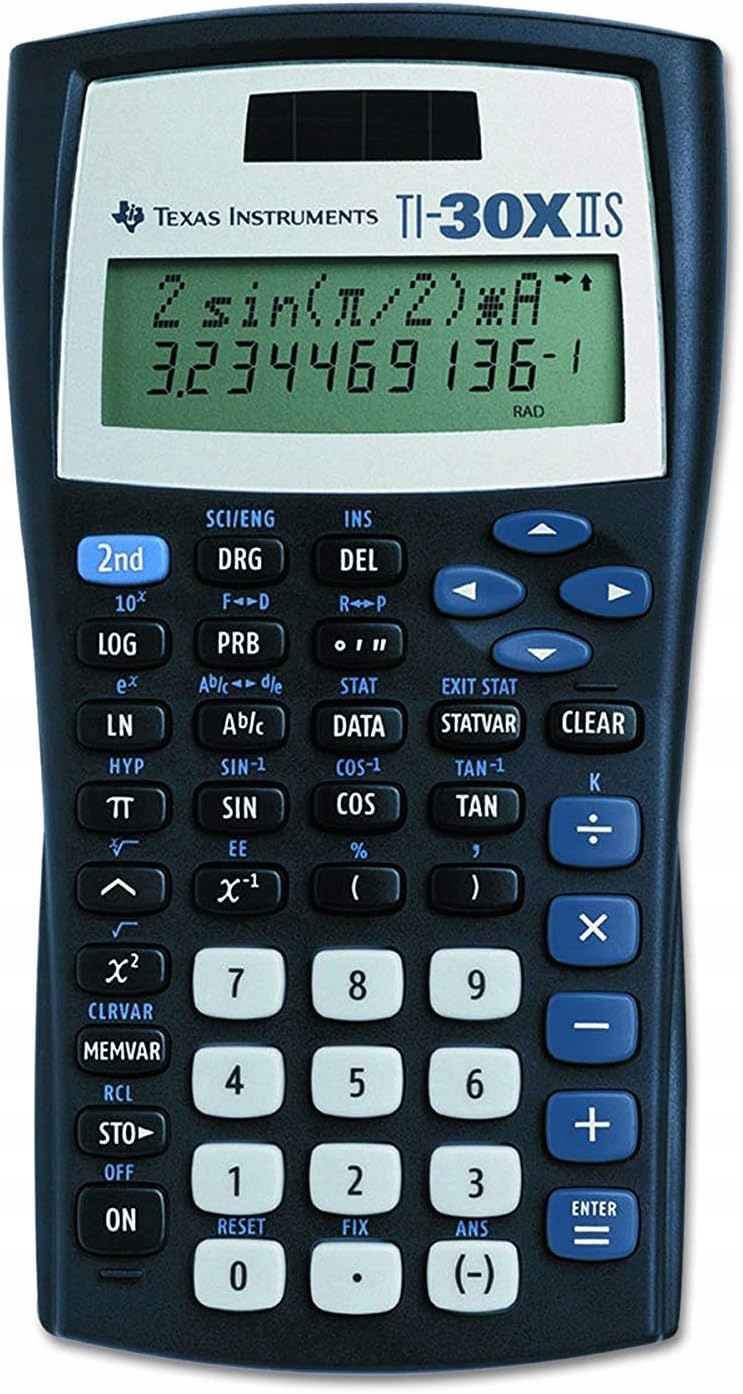Предназначен для расчета статистики и научных функций с функциями для дробей и преобразований. Статистика с 1 и 2 переменными. Позволяет просматривать предыдущие записи в шаблоне. поиск Калькулятор TI-30XIIS с питанием от солнечной батареи и аккумулятора одобрен для использования на экзаменах SAT, ACT и AP