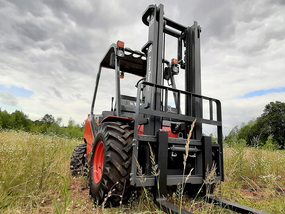 Совершенно новый четырехколесный электрический вилочный погрузчик повышенной проходимости