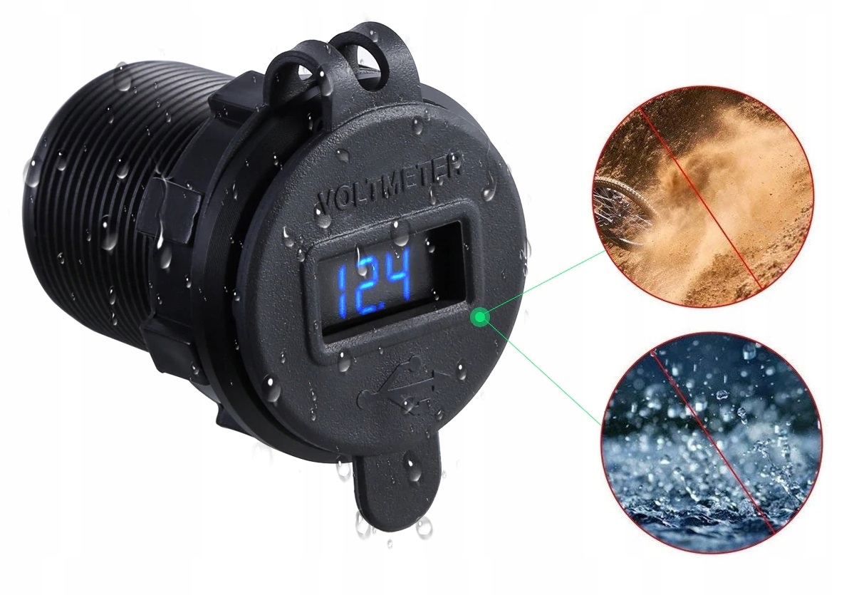 Зарядное устройство с цифровым вольтметром отображает ток уровня напряжения батареи и с двумя быстрыми зарядными USB QC3.0. Набор позволяет использовать оба розетки одновременно , то есть зарядку, например, Навигация и телефон одновременно. Нажмите для включения и выключения устройства.
