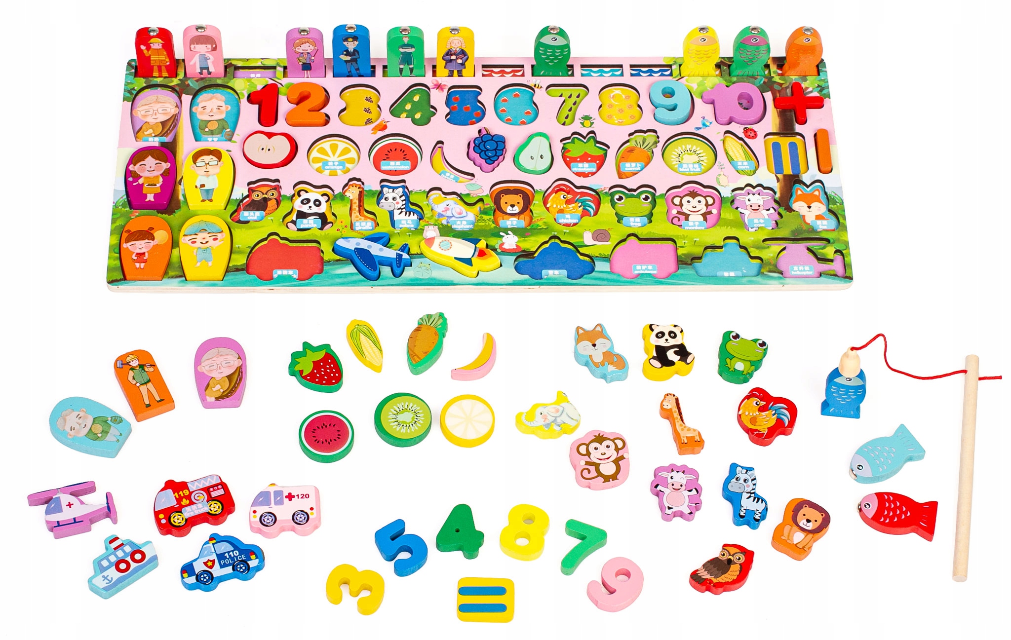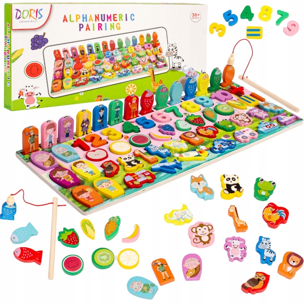 Навчальна дошка MONTESSORI, риба, цифри, фрукти